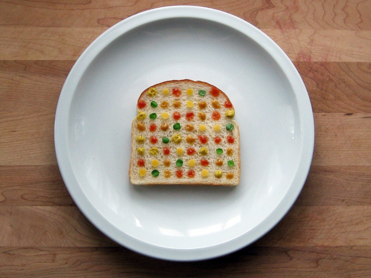 La vita di tutti i giorni è il pretesto per un dialogo creativo inedito: ecco allora che la preparazione di un semplice sandwich diventa occasione per riproporre grandi artisti come Mondrian, Duchamp e il contemporaneo Damien Hirst, la macchina sporca ed impolverata una tela inedita per disegni, le immagini sulle confezioni alimentari spunti per la realizzazione di riproduzioni cibarie post-moderne.