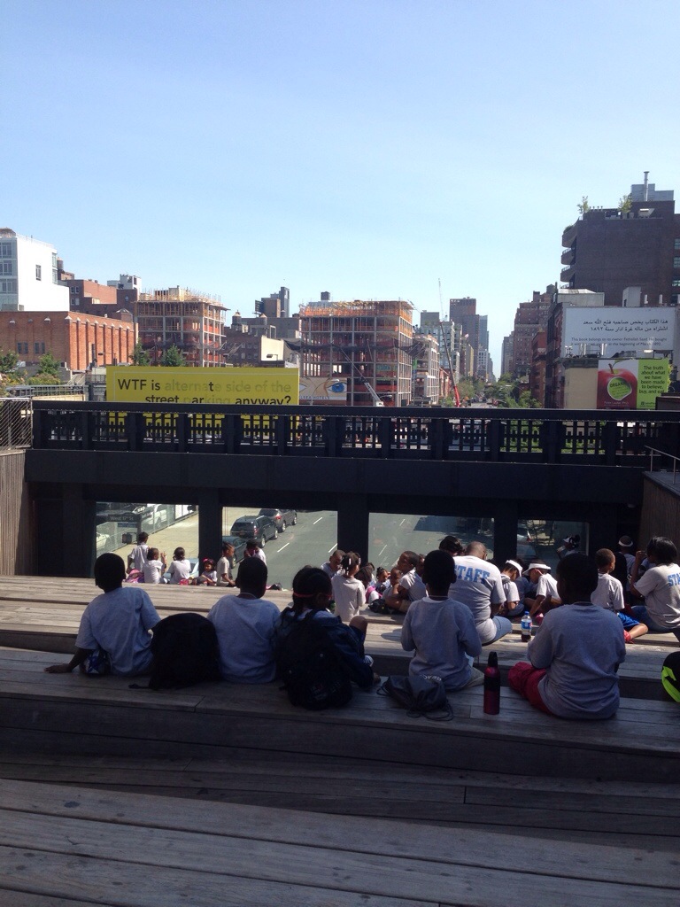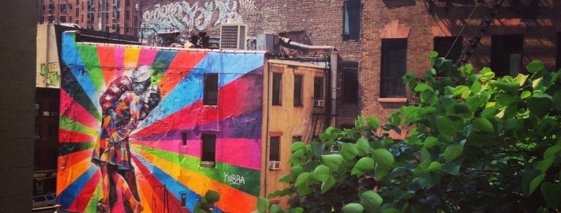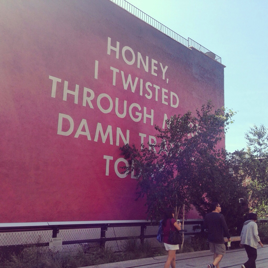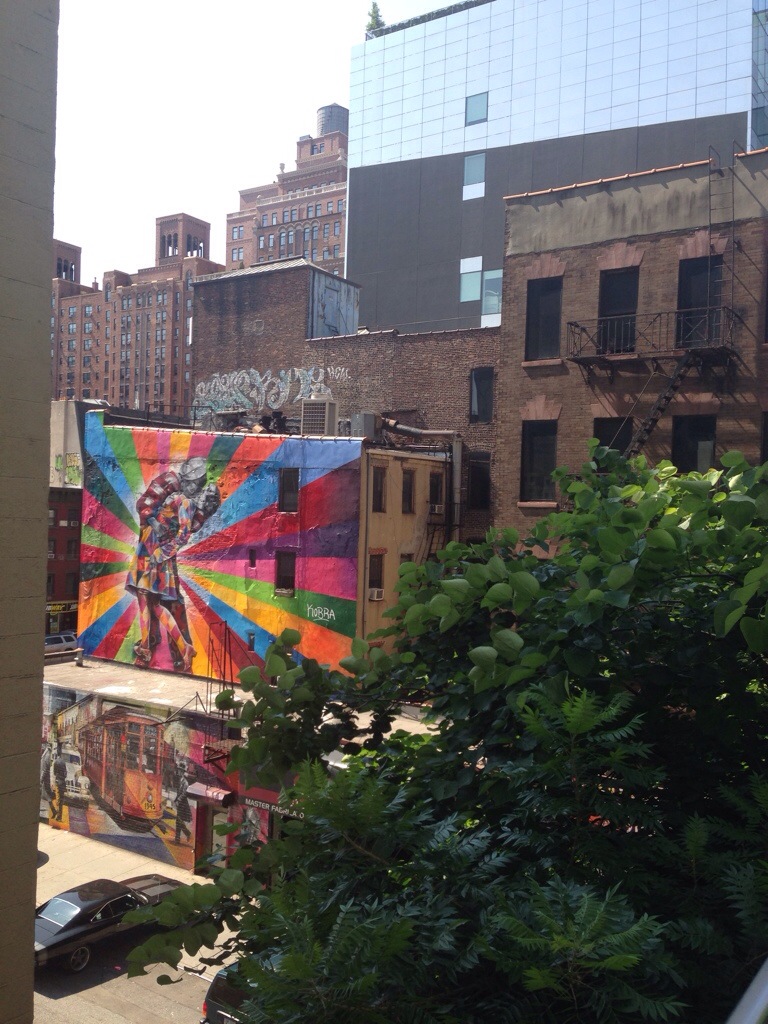 Oggi mi somo svegliata all’alba colpa del jet lag e della voglia di mettere piede fuori casa prima possibile. Prima tappa l’High Line Park parco realizzato su una linea ferroviaria in disuso da Meatpacking District al cuore di Chelsea. Una passerella verde sulla citta’ e all’interno dell’architettura newyorchese. Durante il percorso si trovano opere d’arte come il murales di Ed Ruscha e le statue di Antoine Catala. Poi l’Art Gallery District di Chelsea. L’installazione “Our friend fluid metal” di Nancy Rubins alla Gagosian gallery, una celebrazione delle potenzialità estetiche degli oggetti che popolano la nostra quotidianità. Le fotografie ironiche sul mondo dell’arte di Andy Freeberg alla Andrea Meislin Gallery. Sempre a Chelsea la Printee Matter libreria che vende libri pubblicati da soli artisti.
