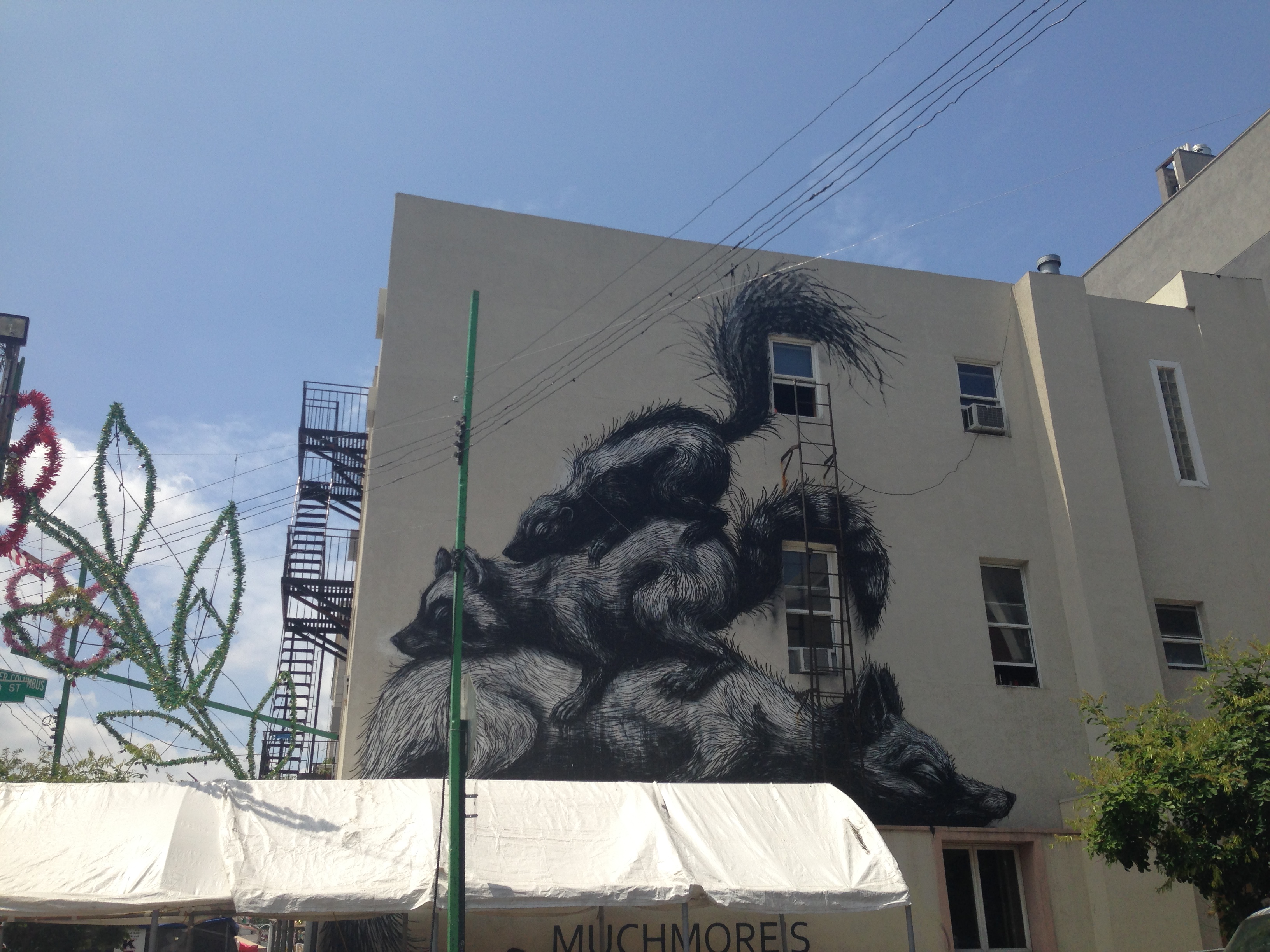 Ho conosciuto la street art come non avevo mai fatto prima. Nel quartiere dove avevo casa a Williamsburg un sabato mi sono avventurata in un tour a piedi con David, newyorchese trasferitosi nel 2010 dal Bronx a Brooklyn. David ha una grande passione per la street art tanto da iniziare a fare da guida in giro per il suo quartiere nel weekend, documentando ogni nuovo lavoro con il suo telefonino. “I am not a camera man” mi ha detto. In piu’ di 2 ore mi ha fatto vedere tanti artisti, mi ha portato a scovarli in una rimessa per motociclisti ed in un garage, mi ha fatto conoscere B.D. White artista della zona costretto su una sedia a rotelle, mi ha fatto notare come siano perfetti nei dettagli i topi giganti di ROA, mi ha fatto vedere i lavori di Cake, street art donna, mi ha raccontato di quando e’ arrivato da Barcellona Francisco de Pájaro che mentre lavorava raccoglieva anche 60 persone al seguito, mi ha fatto vedere l’opera di Mike Makatron di Melbourne appena terminata. Lungo il cammino ogni tanto anche lui si e’ fermato a fotografare scoprendo qualche lavoro mai visto prima. Alla fine mi ha salutato dicendo che il bello della street art e’ che e’ arte in continuo movimento e ogni mattina che scende di casa sa già che probabilmente troverà qualche nuova opera ad aspettarlo.