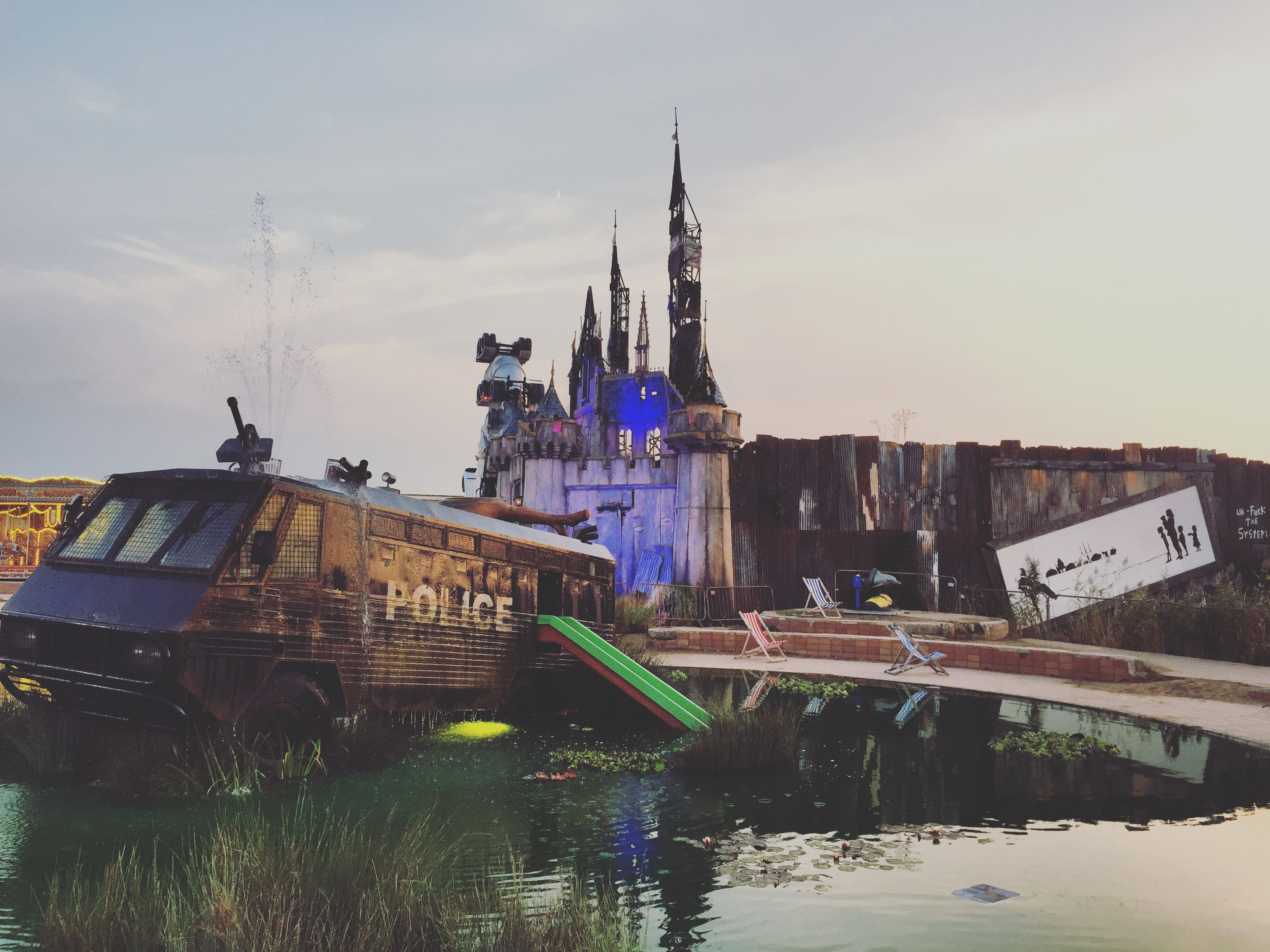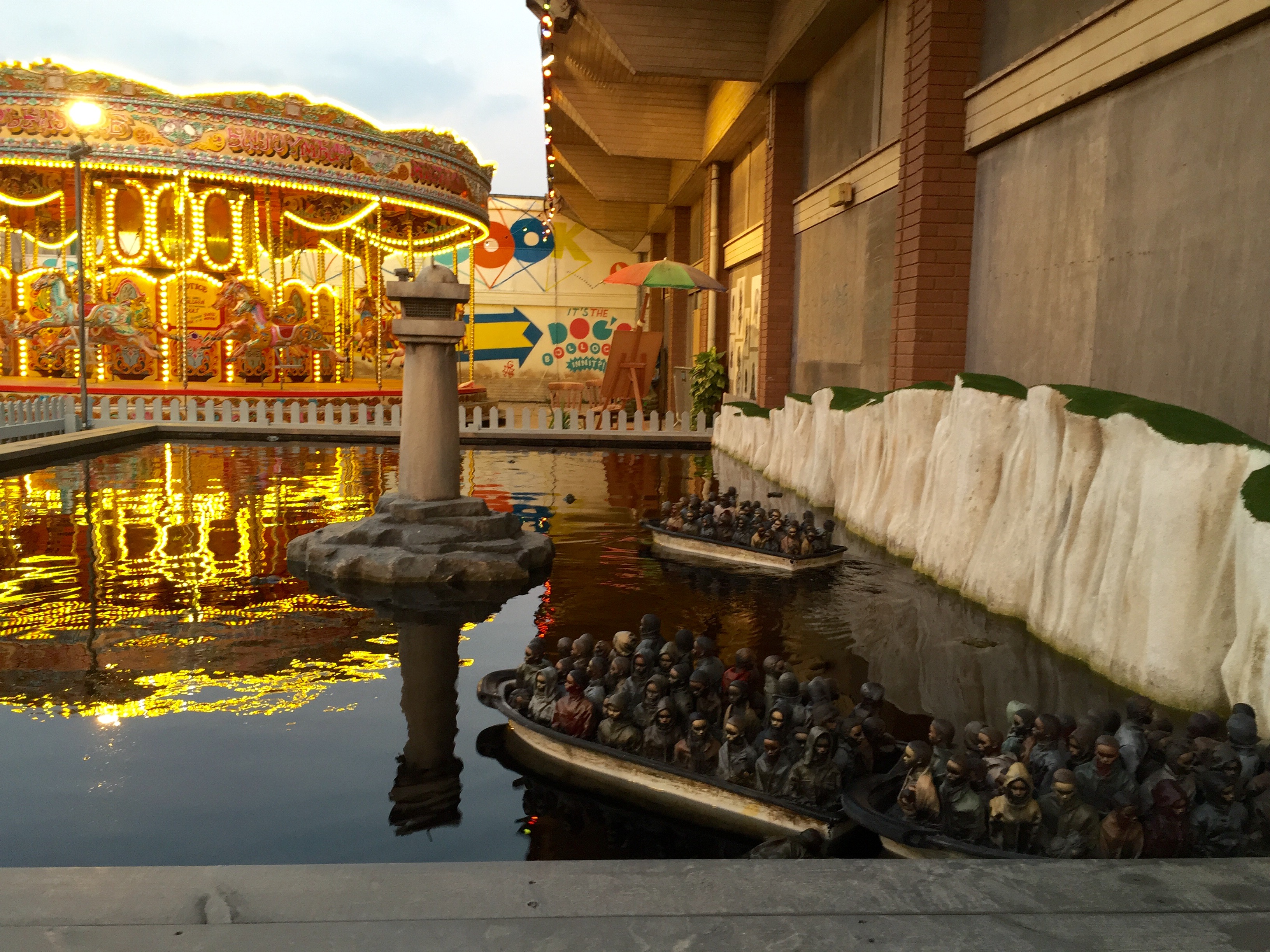 Le loro opere d’arte si integrano perfettamente nel contesto narrativo di Dismaland dove tutto non si limita ad essere un’esposizione d’arte, ma neanche un puro luogo di divertimento.
