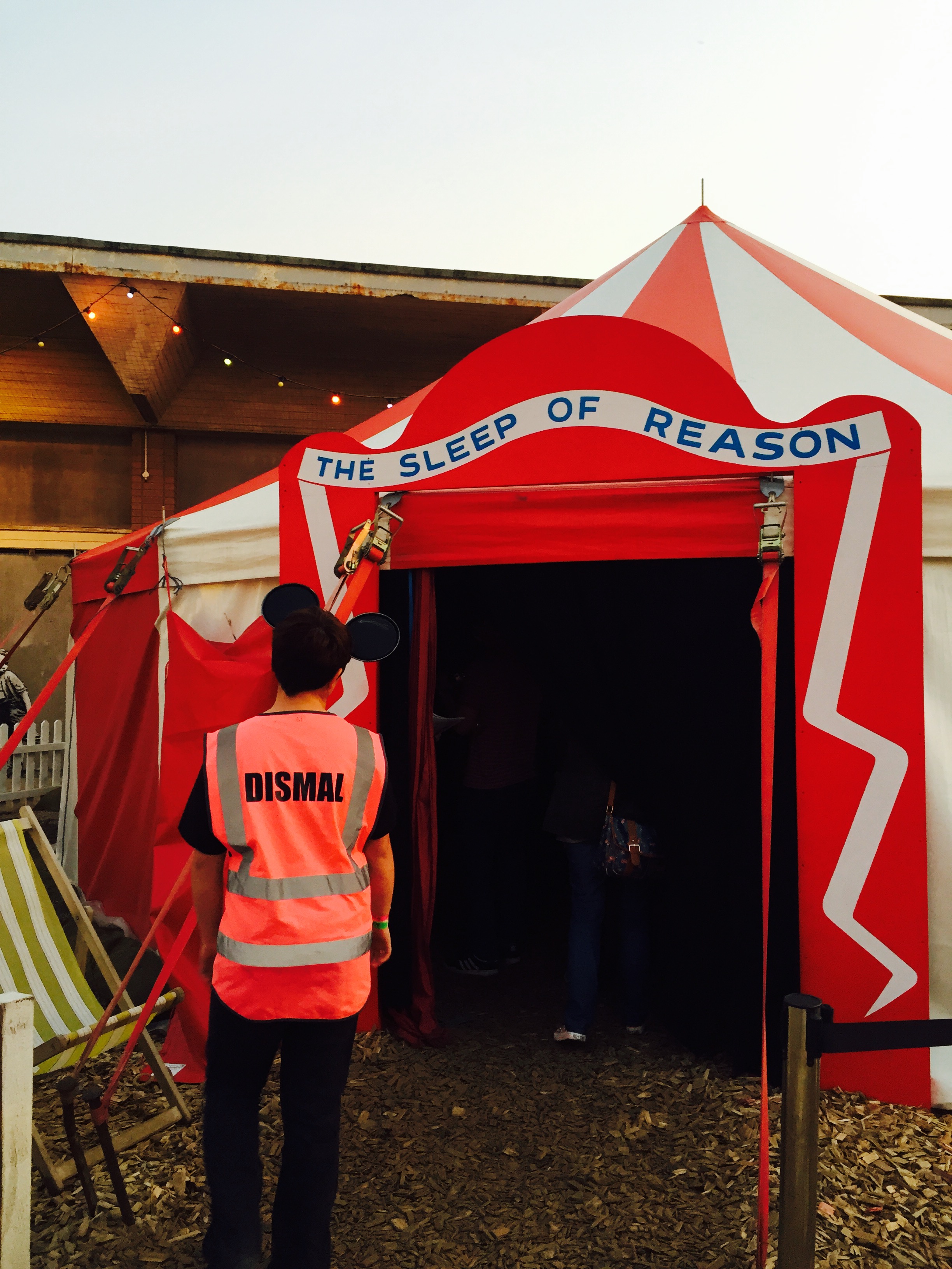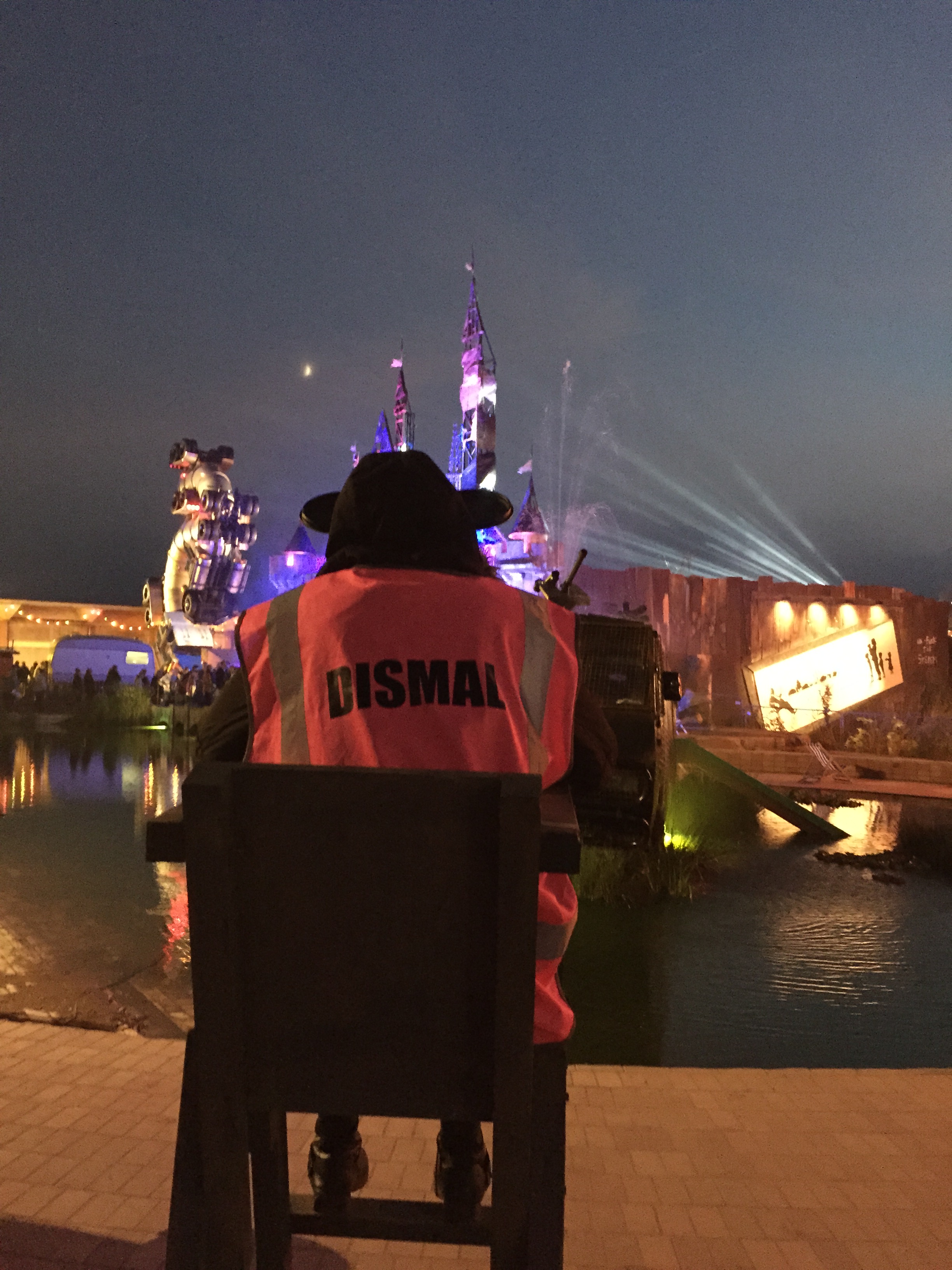 In fila con me all’entrata persone di ogni età e provenienza tutti accomunati nell’attesa dalla voglia di vedere oltre la porta sotto l’immensa scritta Dismaland.