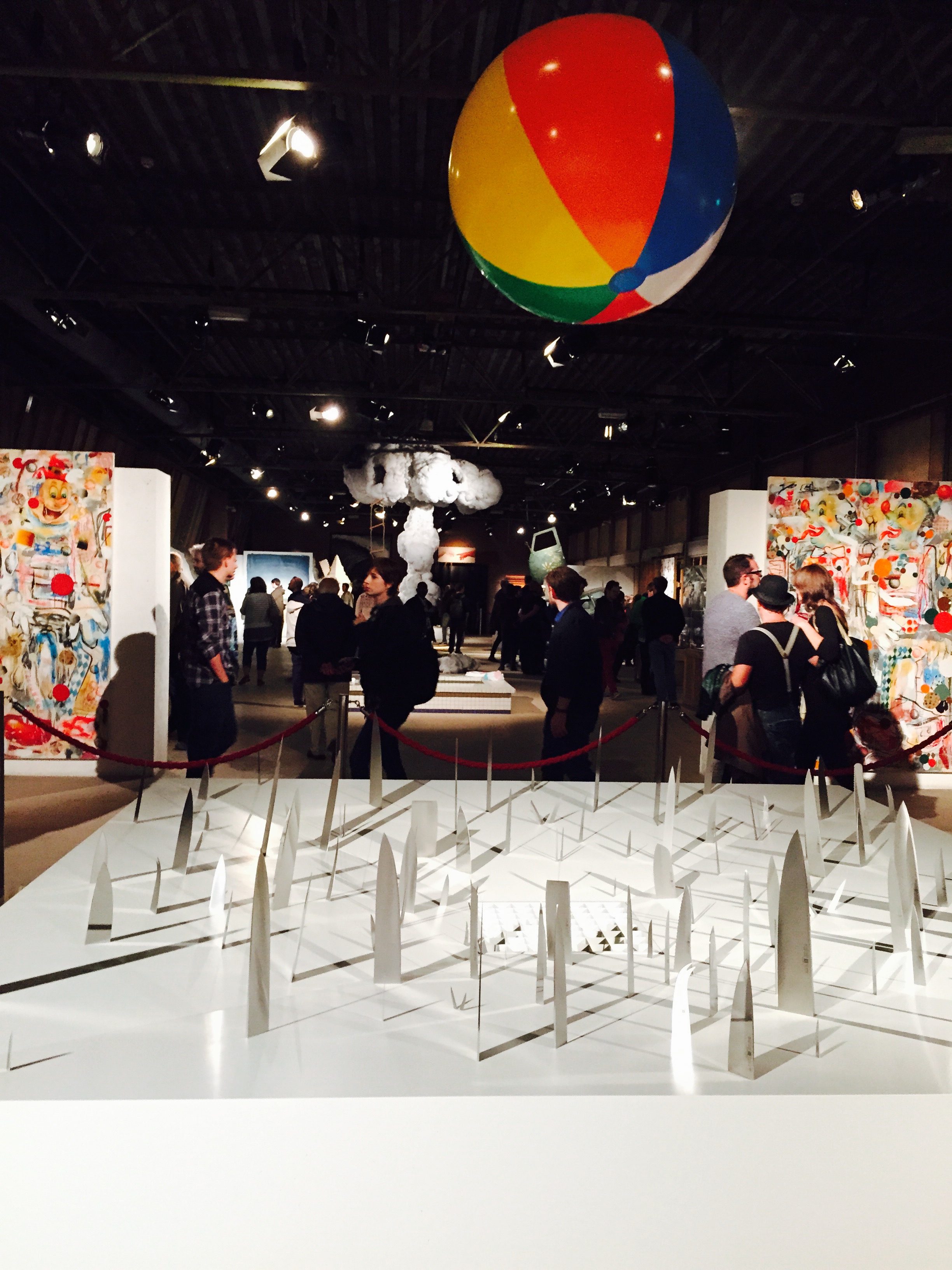 Da Damien Hirst che espone le sue opere nei musei più importanti del mondo, famoso per i suoi animali messi in teche di vetro sotto formaldeide a Brock Davis star di Instagram con 171.000 follower grazie al suo progetto Make something good every day. Dall’artista israeliana Ronit Baranga con le sue ceramiche dalle sembianze umane e inquietanti, ai dipinti senza volto di Laura Lancaster che riproduce fotografie pescate in mercatini vintage fino alla video installazione di artisti più noti come Jenny Holzer o James Joyce con la sua enorme smiley face dai tratti collassati dal titolo Here for a Good Time not a Long Time.